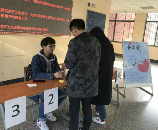 3月25日谐音又名“善爱我”,从心理学的角度意在倡导大学生“善待自我,关爱自我”,并以发自内心的爱与和谐来善待、关爱他人及社会,共同构建美丽和谐校园。工作站的成员们在7栋教学楼大厅进行摆点工作,收集同学们在学校学习或生活中遇到的困难或者烦恼。在活动现场,同学们积极参与活动,通过写信、写小纸条等方式诉说自己在学习生活中遇到的烦恼,也可以帮助烦恼者解决困惑,同时参加活动的人员也在心愿墙写下了自己的心愿。很多同学表示,通过这样活动的形式,不仅气氛十分轻松愉快,而且也起到了解决困惑与烦恼的作用。此外,我校各学院的学生,以及外国留学生也纷纷参与到本次活动中,诉说自己的烦恼,并写下了自己的心愿。