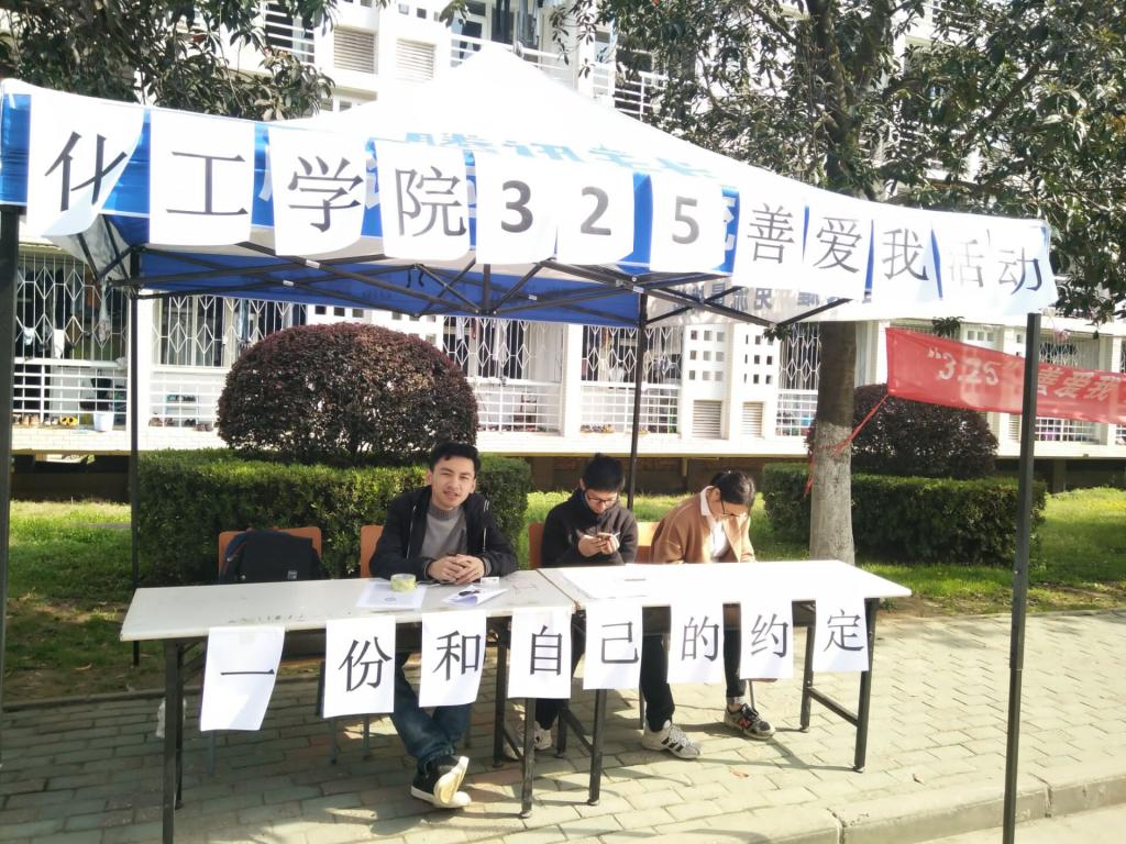 “3.25,善爱我”,为了宣扬善爱我精神,化工学院开展主题教育活动,旨在倡导大学生善待自我、关爱自我,引导学生以发自内心的爱与和谐来善待和关爱他人及社会,共创美好社会。