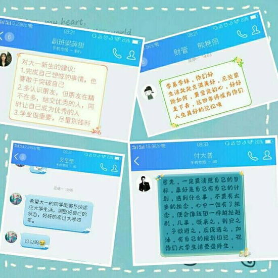 本次活动主要在线上征集,最后由心理工作站的成员筛选抄写,最后放在七栋大厅展览。本次活动取得良好效果,使学院内部感情更加紧密,更是帮助大一新生解决了心中困惑,进一步提高了学院学生心理健康素质。
