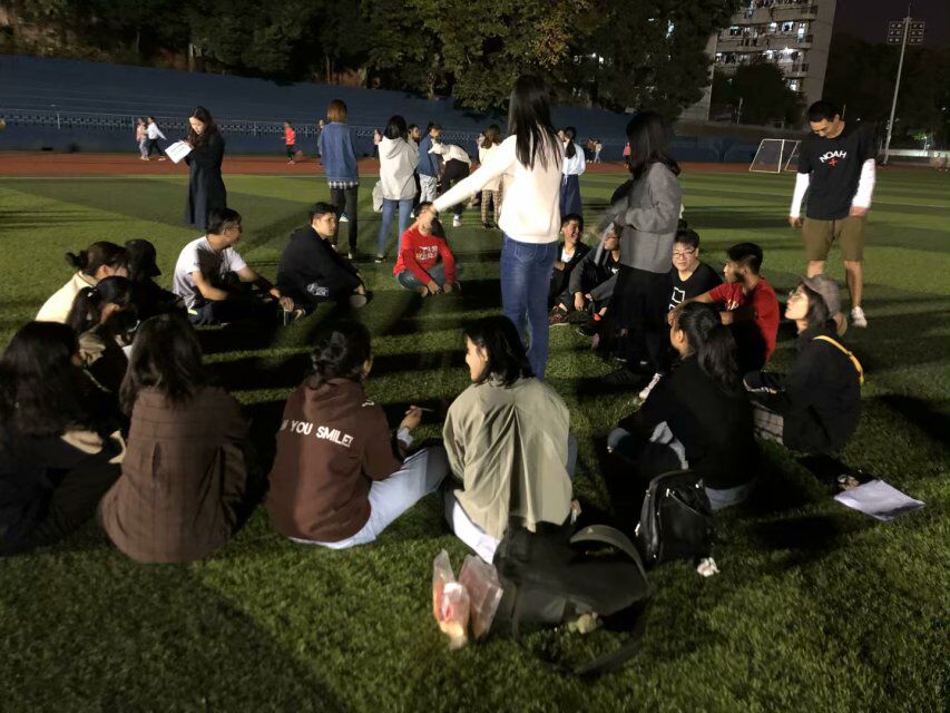 活动开始之前,辅导员张万里带领班长、心理委员和全体心理协会成员进行体验,并进行了指导培训,引导大家在在即将开展的团辅活动中,发挥领导和带动氛围、提高班级同学投入度的作用。各班集体进行了慢跑、“龟兔赛跑”等趣味运动,共同体会运动之美,也激活大家的热情和活力。接着,分别开展班长和心理委员在张老师指导下设计的“盲人游戏”、“两人三足”等团体活动。