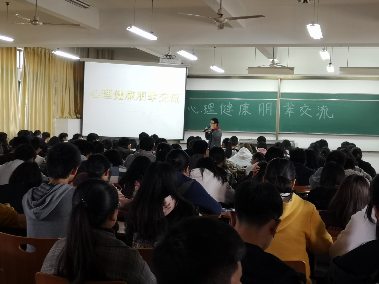 11月26日,化工学院2018级学生在六栋210教室召开心理健康朋辈交流主题大会,交流由兼职辅导员方派主持。就开学以来同学们相处时发生的一些问题,方派做出总结,并提出解决建议。