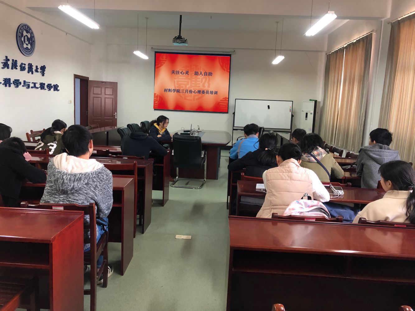 为充分发挥班级心理委员在学院心理健康教育工作中的重要作用,有效推进学院心理健康教育工作的开展,3月14日下午2点,材料学院在学院会议室开展了以《关注心灵 助人自助》为主题的心理委员培训。培训主讲人为黄鹤老师,学院全体心理委员参加了此次培训。