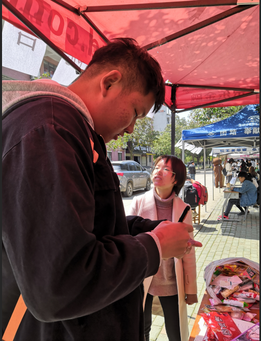 活动中,学院提前策划了一些有趣的小游戏,让同学们在游戏的热身下更好地缓解压力,从而更好地达到向在校学生宣传心理小知识的目的和效果。并在一食堂侧门进行摆点,向过往的同学老师们发放心理知识宣传单,向他们介绍“3.25善爱我”的理念,并邀请他们进行小游戏或者写下今日心情、对“325善爱我”的看法等等,贴在宣传画板上,并为同学们奖励了提前备好的小零食小礼品。来到摆点处的同学们除了可以学习心理知识、获得小礼品外,还可以和我们穿着布偶熊的工作人员合影。