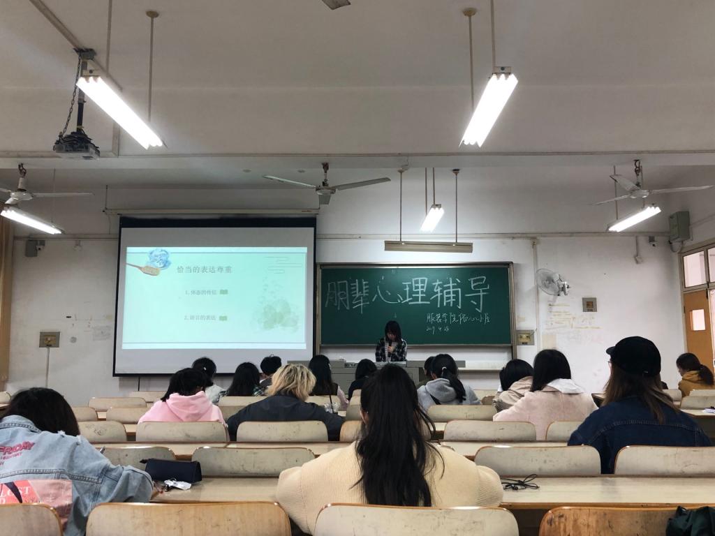 2019年4月28日下午,服装学院心理工作站举办本学期第二次培训活动。本次培训的主题是“朋辈心理辅导”,由学院心理工作站咨询部姜玲主讲,各班心理委员以及心理工作站干事参加了本次培训。