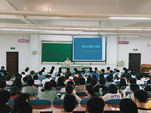 为进一步关注毕业生心理变化,做好毕业生就业心理疏导工作, 2019年6月3日下午电子电气学院“阳光E栈”在03-120教室举行了一场以“毕业生就业压力疏导”为主题的心理委员培训活动。本次活动由电子电气学院严荣华老师主讲,“阳光E栈”成员和全体心理委员以及所有2015级毕业生参加了此次活动。