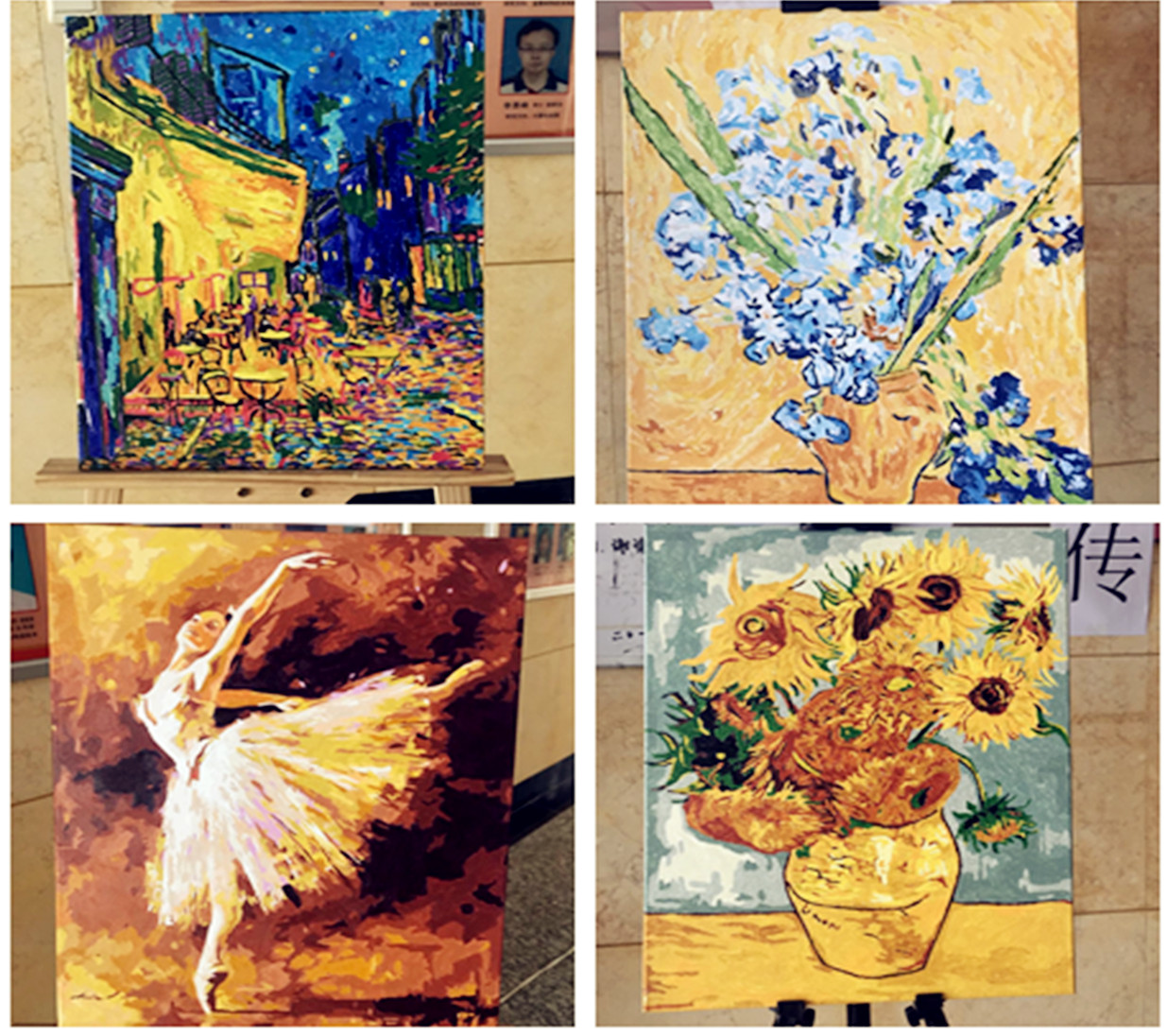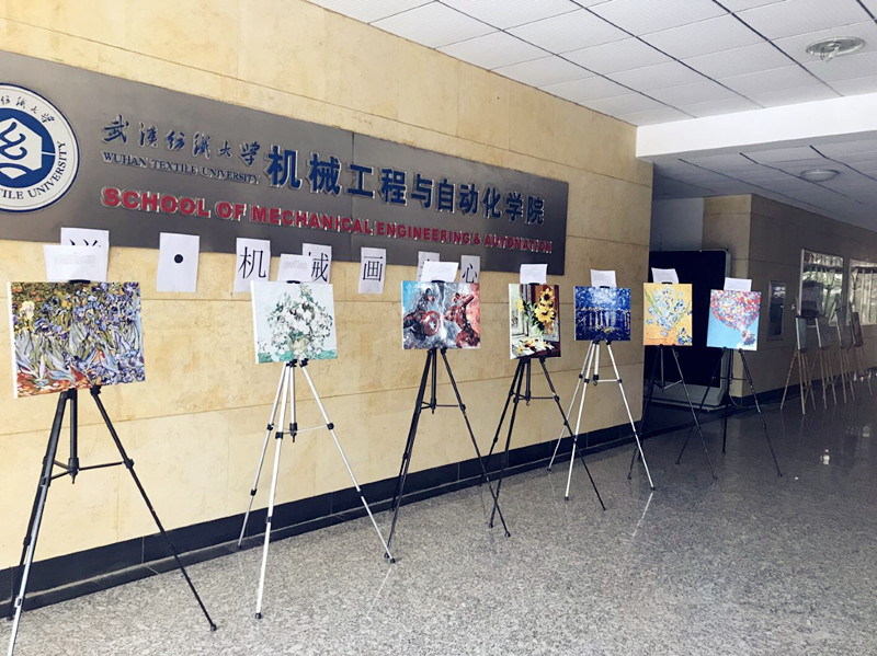 机械学院一楼大厅展出十三幅油画作品,这十三幅作品是由19级的十三个新生班集体以“传递”的形式历时一个月的时间精心绘画完成。传递凝聚新生班级,绘画抒写心中情绪,该主题活动由学院“向日葵”心理健康站策划推出。