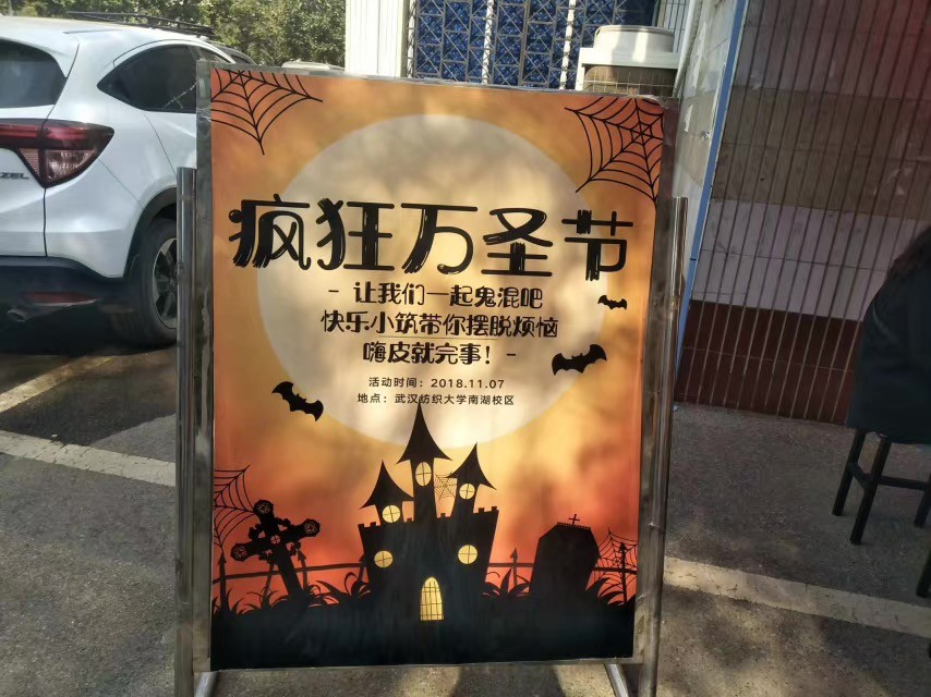 为了丰富校园生活,缓解学生心理压力,拉近同学之间关系,促进人与人之间的交流, 11月7日,传媒学院快乐小筑心理工作站在学生食堂门口开展了以“万圣节”为主题的校园活动。