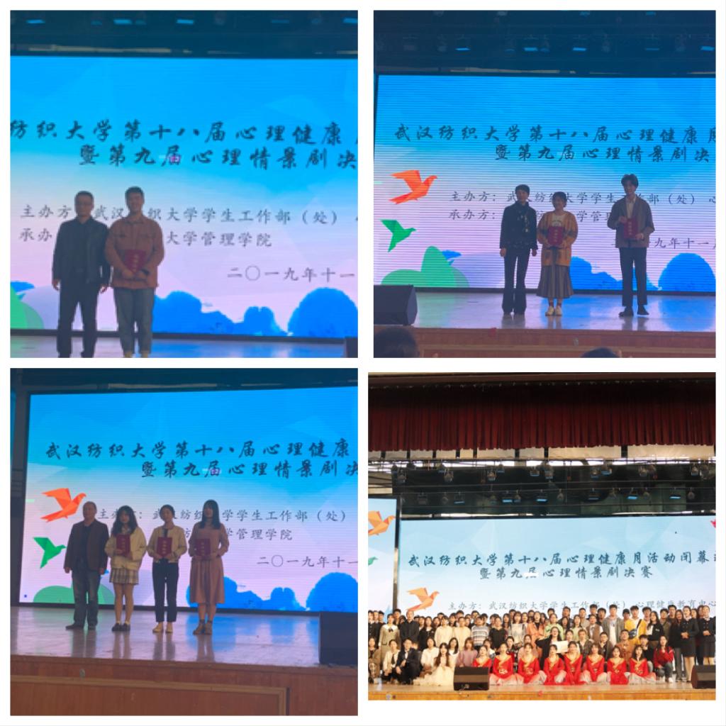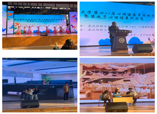 为了加强大学生心理健康教育,11月14号下午14:00,武汉纺织大学第十八届心理健康月活动闭幕式暨第九届心理情景剧决赛于阳光校区大学生活动中心隆重举行。此次比赛以“扬心理之光,耀青春之美”为主题,由武汉市武昌医院心理专家张立国教授、管理学院党委书记滕胜娟、校学生工作部部长杜勇、学生工作部副部长李琼瑛以及校心理健康教育中心的专业教师江秋玮、赵宝富担任评委,出席本次大赛的还有各学院副书记及赛事指导老师,各个学院也组织学生代表现场观看比赛。