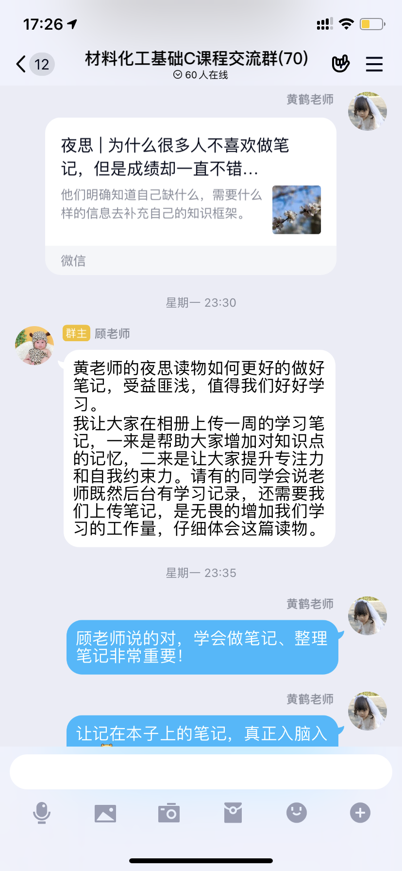 同时,为了配合做好学院的学风建设,让同学们更好地宅家学习。“心语心园”发起了“我手写我心”征文和学霸心得分享。辅导员黄鹤老师和祝捷老师纷纷给“学霸”笔记分享进行了点赞,并鼓励同学们处理好疫情期间的心理调试和学习自控力,喊话同学们积极做“行动派”。