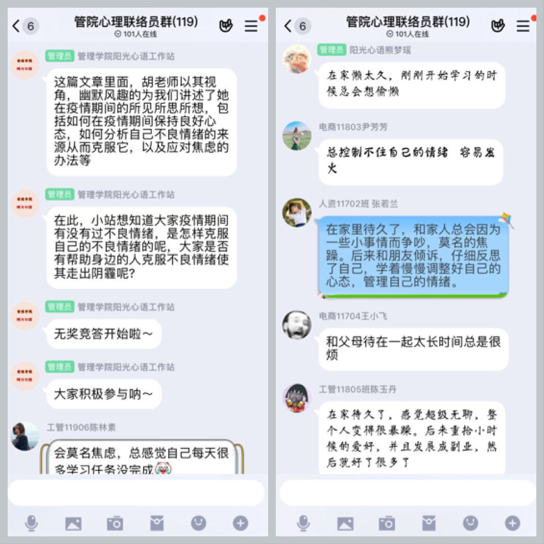 2020年3月26日下午,管理学院胡惠老师以“如何克服疫情焦虑”作为今年“3.25善爱我”的主题,在网上开展了一次心理委员培训课。