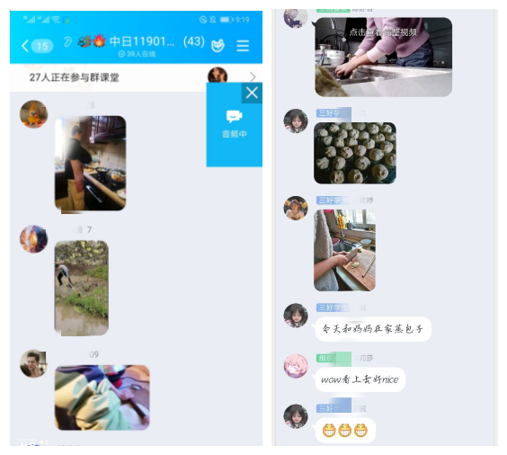在线上班会中,同学们积极交流着自己在家的成果。居家学习靠自律,有的同学展示了自己在家上网课的专注、浓厚学习氛围的小书桌、工整的学习笔记。运动可以增强免疫力,也能缓解压力,有的同学展示了自己在家花样的运动。居家的日子,还有很多同学都成为了美食小达人,自己制作了很多诱人的美味菜肴、糕点。