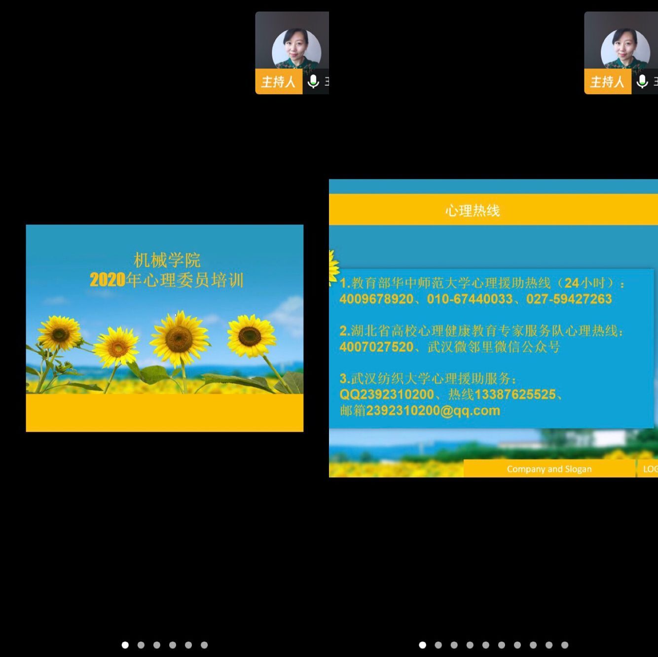 4月9日下午,机械学院向日葵心理工作站开展“抗疫暖心”心理委员培训专题会,心理工作站指导老师王娟做《疫情期间的心理调试方案》报告,机械学院心理工作者全体成员和全院各年级心理委员在线参加培训会。