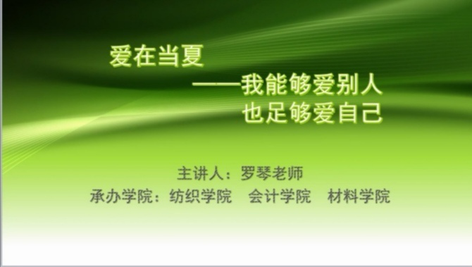 2020年7月3日晚8点,由校学工部、心理健康中心主办,纺织学院、会计学院和材料学院承办的云端师生心理健康讲座在腾讯会议成功举行。本次讲座面向全校师生开放,由国家二级心理咨询师、心理治疗师罗琴老师主讲,主题是“爱在当夏——我能够爱别人 也足够爱自己”,纺织学院严蔷薇老师主持了本次会议。