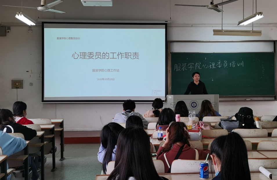服装学院心理工作站于10月29日在5510举行心理委员培训。本次培训的主题是“心理委员的工作职责”,由学院心理工作站负责老师罗周燕主讲,工作站所有成员和学院心理委员参加了此次培训。