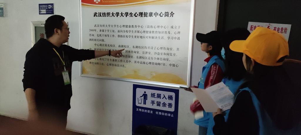薛敏老师向大家介绍,大学生心理健康教育中心面向全校学生开展心理健康教育知识普及、心理咨询、危机干预等工作,帮助在校学生更好地应对和解决生活、学习中遇到的相关问题。中心现在阳光校区、南湖授区、东湖校区均开设了心理咨询案,其中,阳光校区设有个体咨询室、团体咨询室、宜泄室、沙盘室和阅览室。