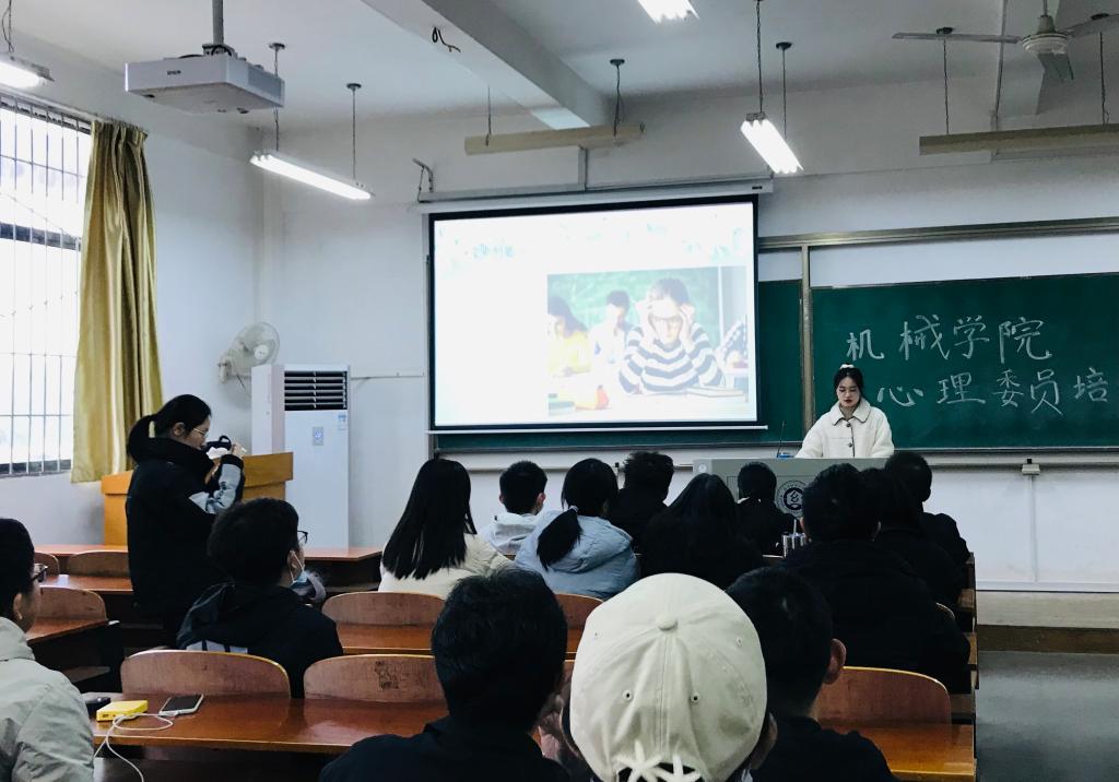 11月25日中午,机械学院向日葵心理工作站在3栋教学楼YG03-111教室开展“大学生心理健康知识”心理委员培训专题会。培训会由王娟老师主持,机械学院心理工作站全员和各年级的心理委员共同参加。