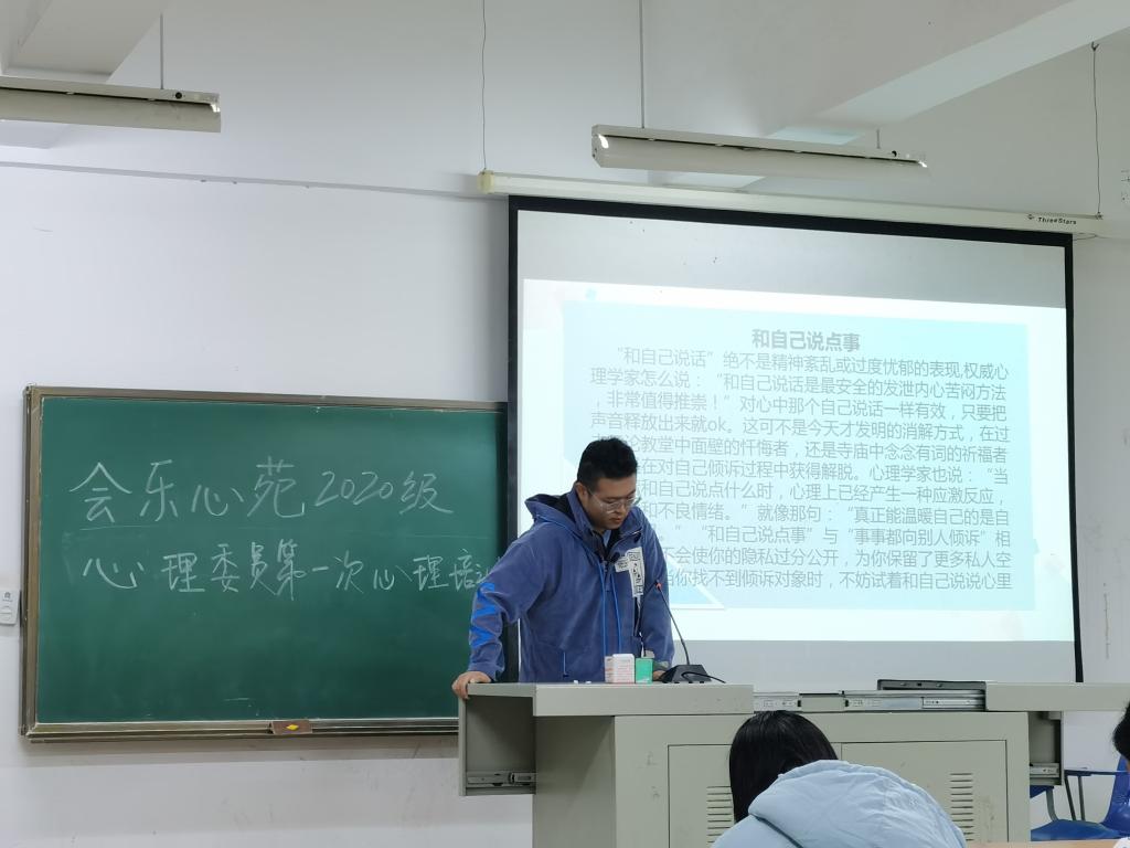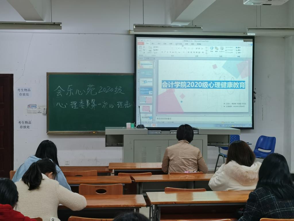 2020年11月24日,会计学院心理工作站“会乐心苑”在07-134教室开展了本学期对2020级心理委员的心理培训。本次活动主要是围绕三大部分:如今大学生的心理健康问题,心理评估方法以及保持心理健康的方法。由朋辈咨询部蒋凌霄,孔瑞涵和李奕欣主持培训。