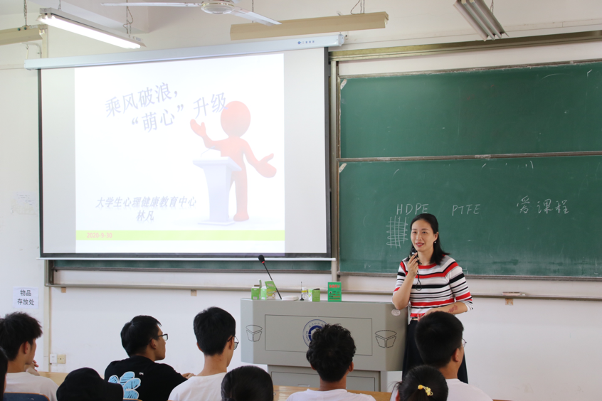 纺织学院于2020年9月30日下午2点,在3栋教学楼举行了一场以“乘风破浪,萌心升级”为题的心理健康教育讲座,本次讲座由学校心理健康教育中心专职教师林凡主讲,2020级全体新生参加。
