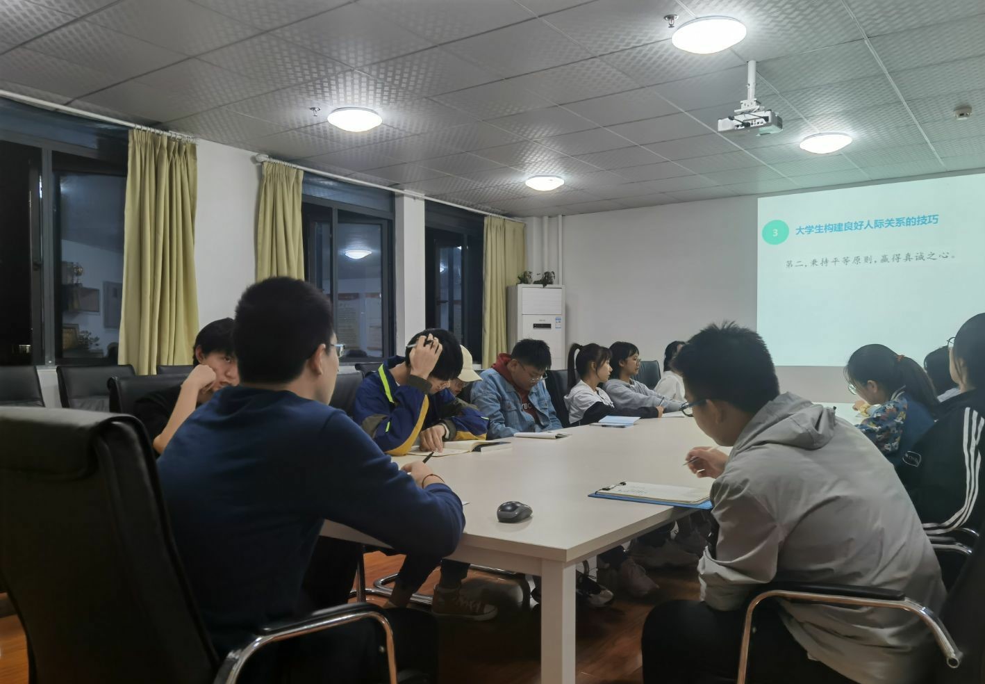 10月26日下午6点,数计学院心理健康工作站i心苑在学院会议室崇真楼A4031举行心理委员培训会,此次培训由辅导员谢旋老师主讲,培训主题为“00后青年大学生良好人际关系处理技巧”,i心苑全体工作人员及2020级各班心理委员参加培训。