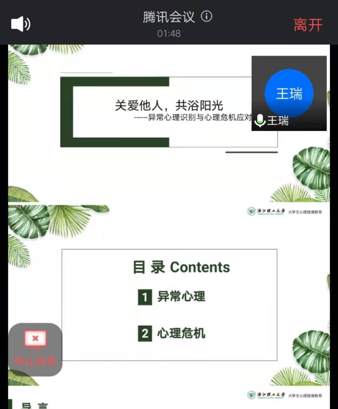为加强大学生心理健康教育,提升学生心理健康教育工作的针对性和实效性,11月26日,经济学院于腾讯会议组织开展心理健康教育讲座。本次讲座由浙江理工大学大学生心理健康教育中心专任老师、国家二级心理咨询师王瑞老师主讲,学院党委副书记黄俊鹏及学生100余人参加此次讲座。会议由辅导员凌杰主持。