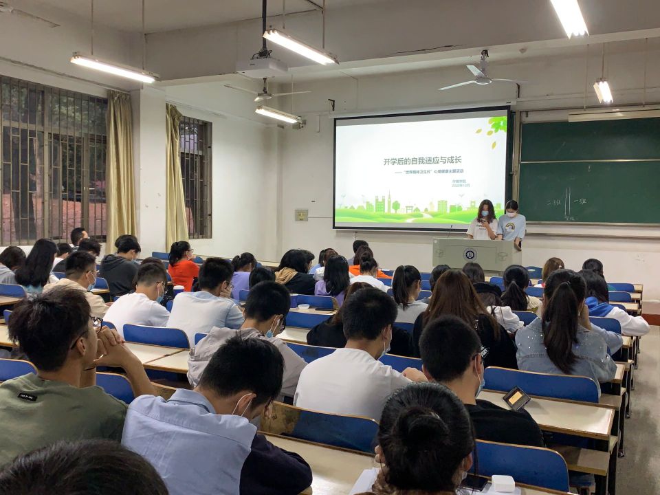 2020年10月10日,是第29个“世界精神卫生日”,传媒学院以班级为单位举行了以“弘扬抗疫精神,护佑心理健康”为主题的系列团体辅导班会活动,班会由各班心理委员组织,由心理工作站负责老师黄鹤指导,向同学们仔细介绍了“世界精神卫生日”的由来和意义,给同学们普及了心理健康基础知识,并借用案例和小活动,引导同学养成良好心理品质,适应大学生活。