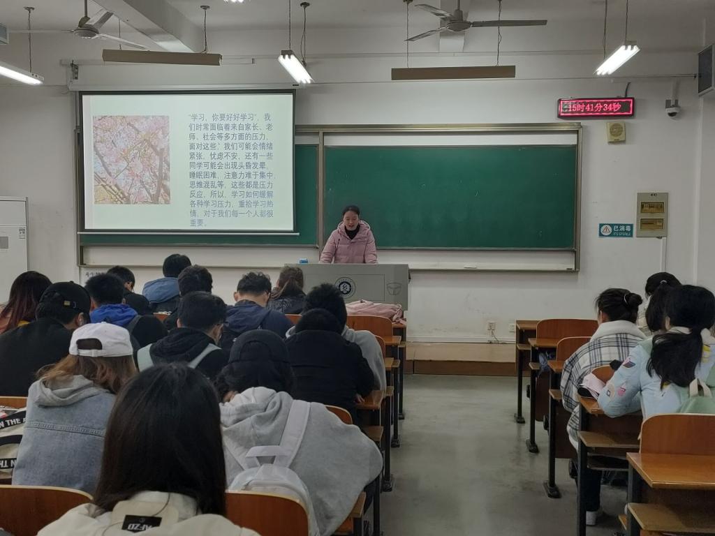 大学是社会的小缩影,也是学生第一次独立生活,会产生来自不同方面的压力,对学习的担忧,对未来的焦虑,自己情感的失利等都会给大学生带来巨大压力。因此,此次心理团辅主题班会围绕人际交往、学习压力、生活规划、就业指导、情绪调节、恋爱指导等方面开展,向同学们提供一些合理释放压力以及解决问题的方法。各班团支部以“学习化解压力”为主题组织召开心理团辅班会,通过“寻找心中障碍”找到压力来源;举办“大家一起来帮忙”的活动邀请同学帮助自己克服困难;“观看视频”以释放压力等方法进行班级心理团建,并且成功为同学们解决不少心理问题。参加此次班会的同学们纷纷表示,通过此次心理团辅活动,缓解了学习压力,同时也学会了如何进行情绪的管理和调节。