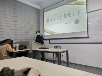 交流会上心协咨询部成员王简向同学们分享电剧本杀中的故事《已知死亡》,她通过精美的PPT与有趣的结说,向大家展示剧本杀的魅力,同学们都认真倾听。
