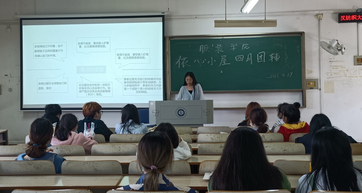 4月29日中午在综合楼5510服装学院心理工作站依心小屋举行了以“容貌焦虑”为主题的培训活动。学院心理工作站全体成员和全院心理委员参加了此次培训。