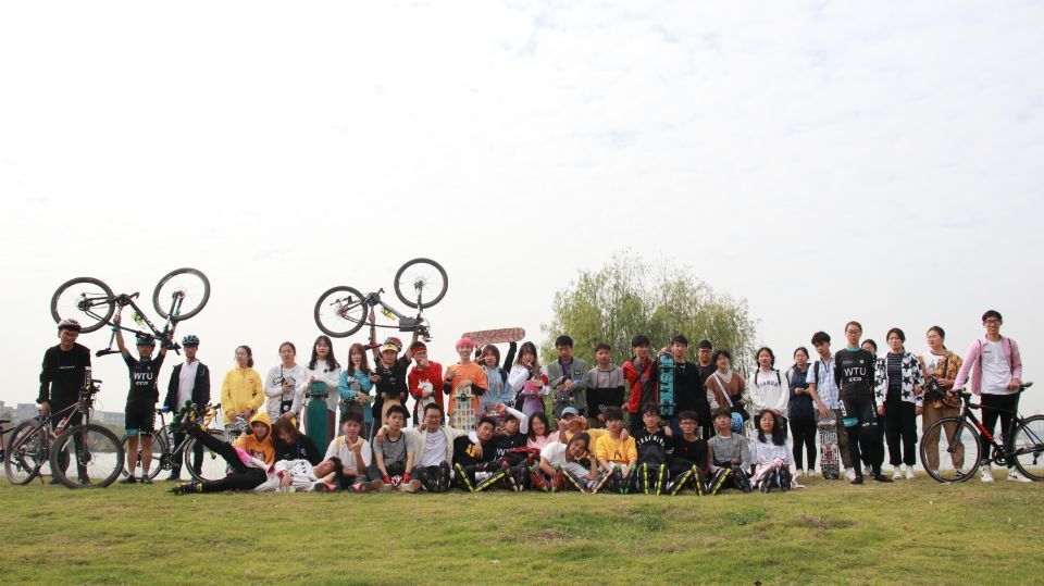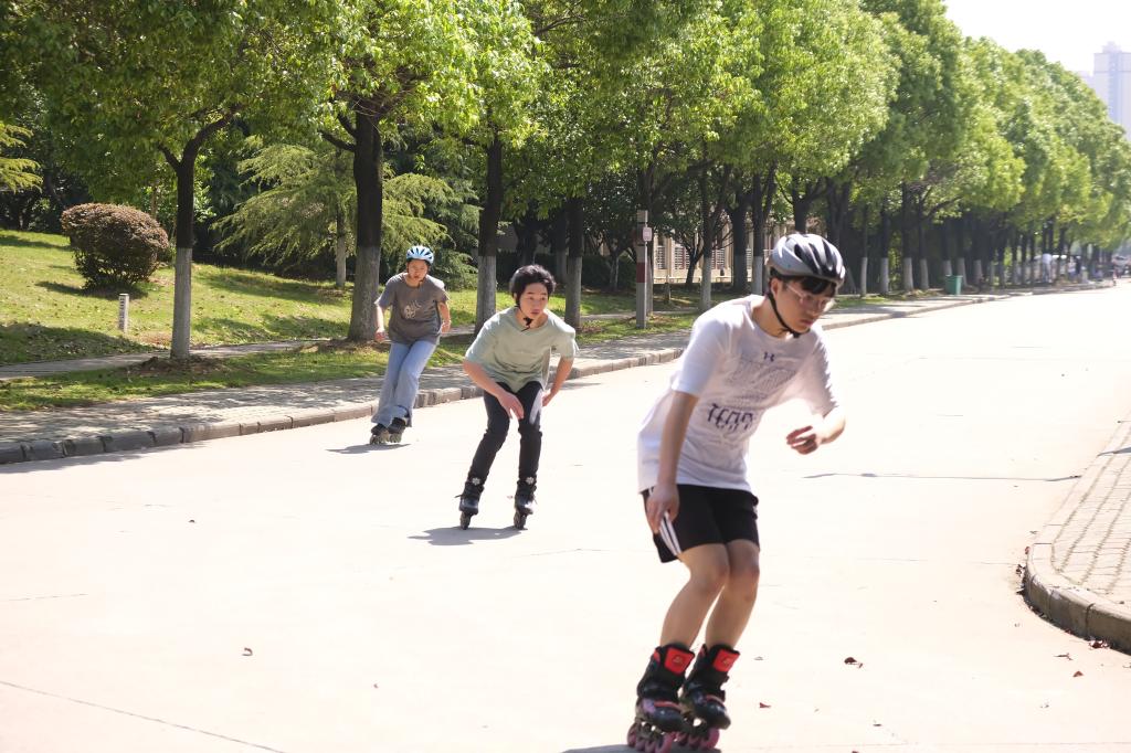 活动在操场外围400m长水泥地以折返接力方式进行,方式为滑板先行,自行车最后,同时三个类型项目之间间隔一定时间,累加计时方式进行。避免了滑板、轮滑和自行车同时出现在赛场上的情况,降低了发生碰撞的风险。同时3个社图分别派出一人,累计三人组成一队,促进了三个社团成员间的认识和交流机会。