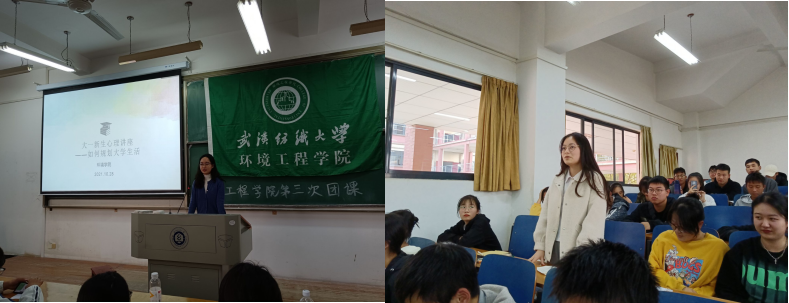10月28日下午,环境学院在三栋教学楼217开展“聆听心声,做情绪的主人”心理健康讲座,21级辅导员石伊可主讲,学院21级全体学生参加讲座。